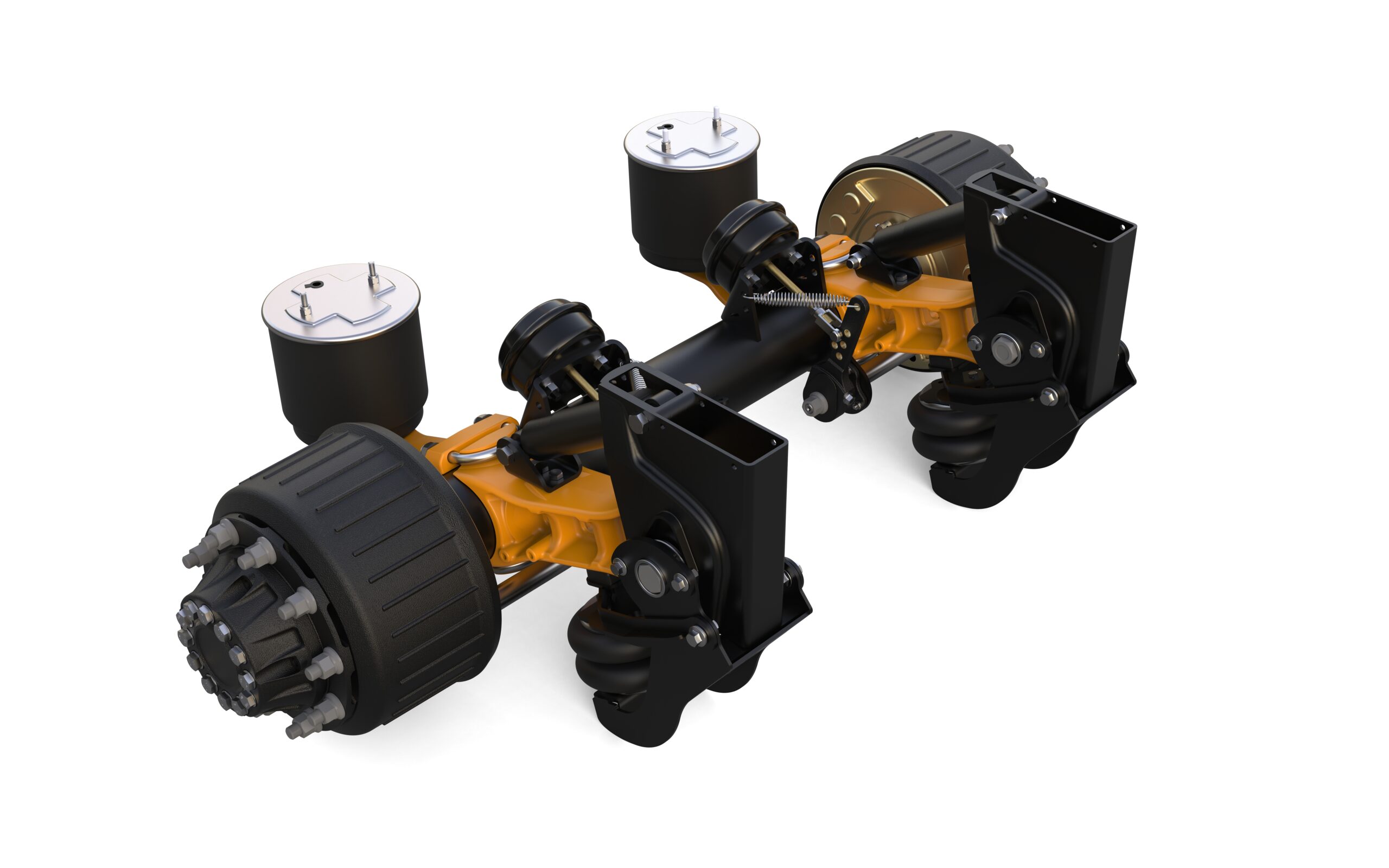 محور کاسهای جفتلاستیک فنر قیچی یکی از مقاومترین انواع محور تریلر است که برای کاربریهای سنگین طراحی شده. استفاده از فنرهای قیچی (Boggie Suspension) باعث میشود فشار وارد بر محور و شاهنگها در مسیرهای سخت و ناهموار تقسیم شود و دوام سیستم تعلیق بالا برود.